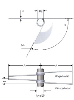 通常扭轉(zhuǎn)彈簧是被安裝在一個芯軸上的,同時外部可能還有一個用于限位和保護的圓柱形外殼。當簧臂被固定裝配時,扭轉(zhuǎn)彈簧也可以無需芯軸發(fā)揮限位功能。與簧體呈切線方向的簧臂是最常見,有時候放射方向或軸向方向的簧臂也是可能的。在很多應(yīng)用中簧臂的方向和長度都必須配合其他裝配件的要求精心設(shè)計。